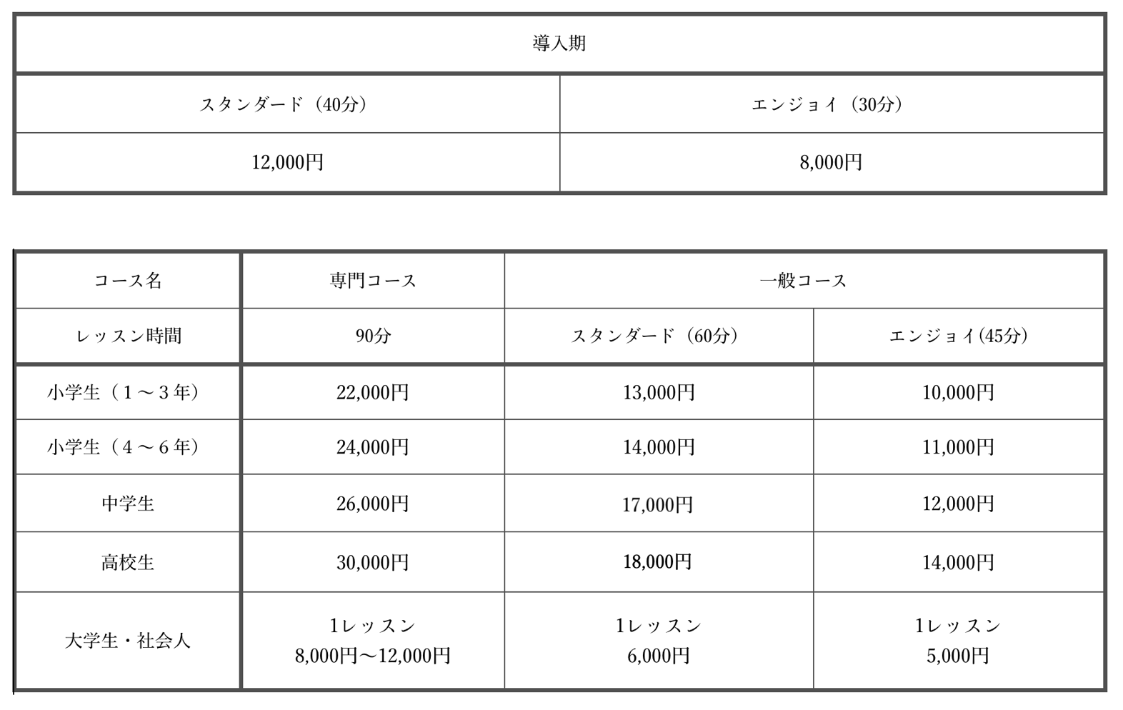 *高校生以下は、定期的にお稽古を重ねることで、成果に結びつくと考えられるので、月謝制とさせていただきます。
